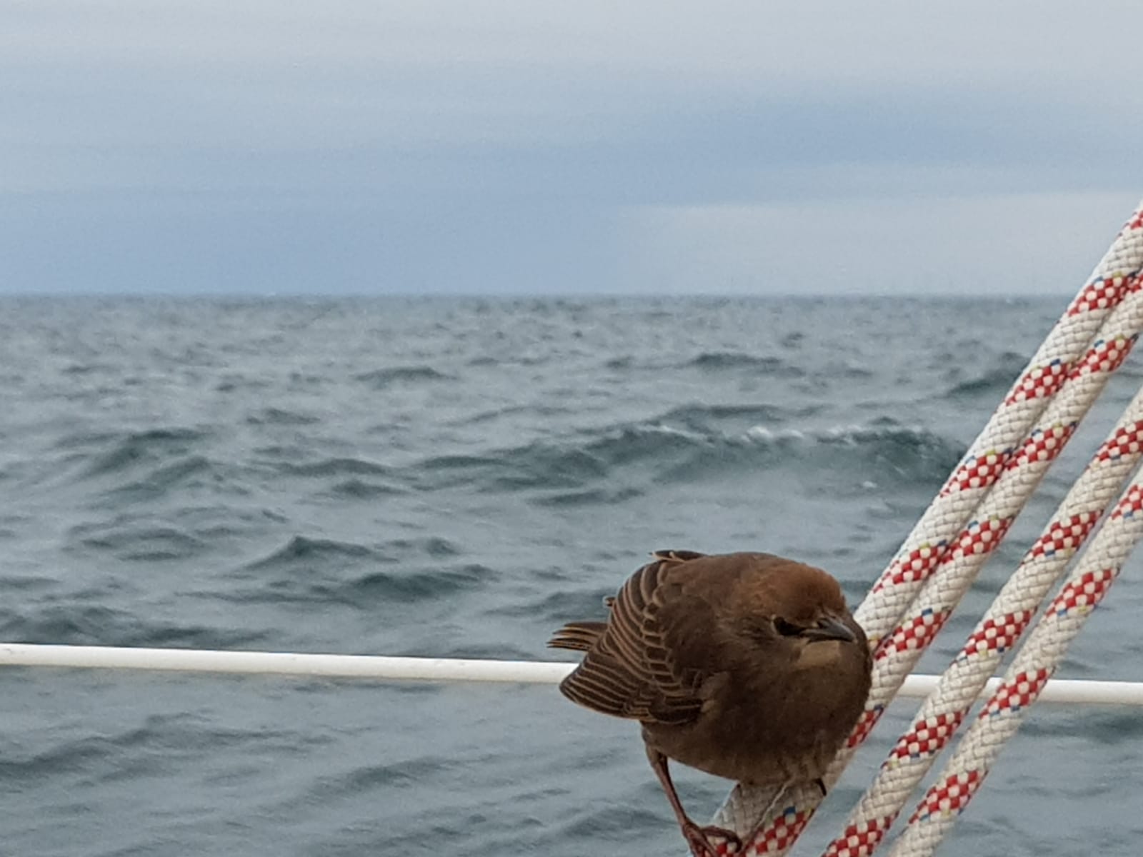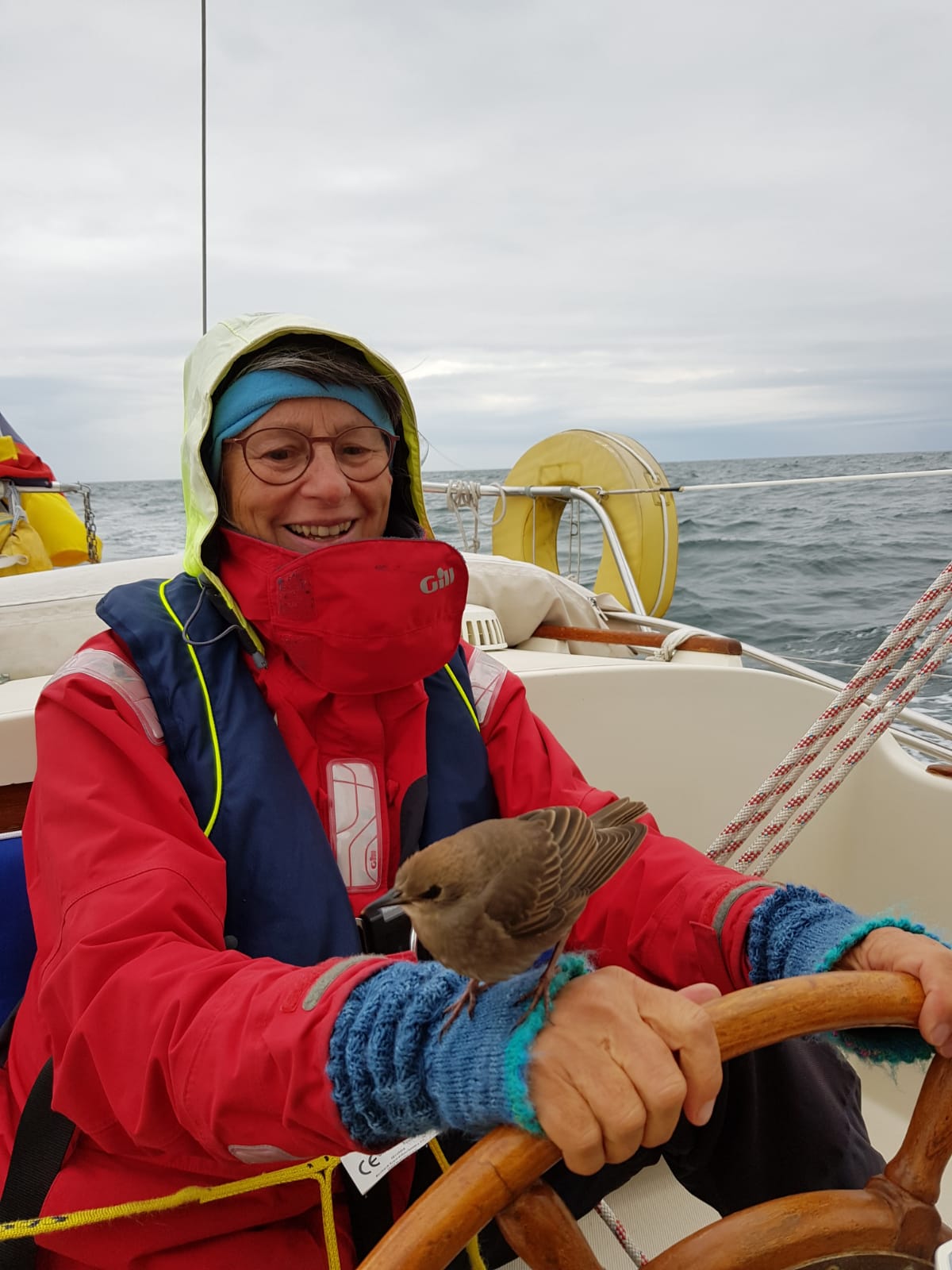 Nach und nach nahmen Wind und Wellen zu, der Wind drehte leider nördlich und wir fuhren einen 60 Grad Amwindkurs. Mein Skipper band ein Reff ins Groß. Ich war konzentriert am Ruder und fuhr das Boot bei heftigen Böen zum Reffen in den Wind, bloß keinen Fehler machen! Der Wind nahm weiter zu, wir refften die eh schon kleine Arbeitsfock. „Doch lieber nach Hals ablaufen? Aber wir sind schon so weit.“