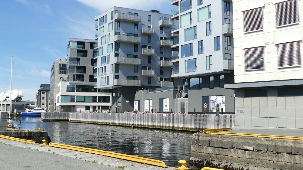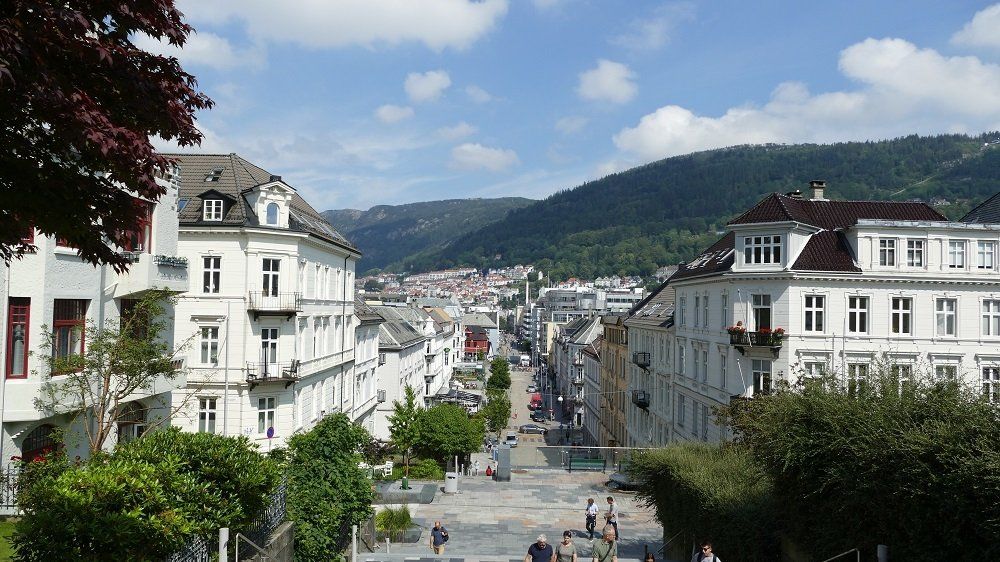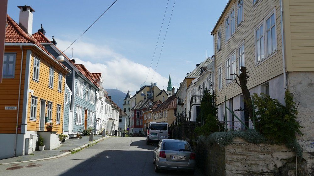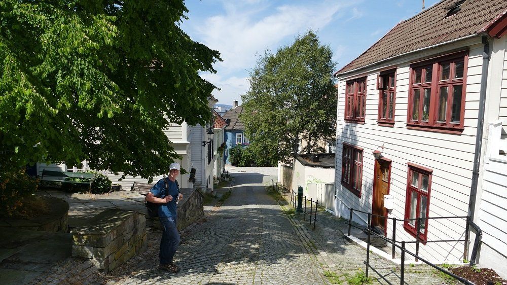Bergen ist mit knapp 300 000 Einwohnern die zweitgrösste Stadt in Norwegen. Die Altstadt mit ihren engen Gassen und Holzhäusern gefällt uns gut. Die Bauten aus späteren Jahren oder die Neubauten überzeugen uns nicht wirklich. Da hat Oslo eine spannendere Architektur zu bieten. Als wir ziellos durch die Stadt schlendern und irgendwann bewusst die idyllischen Holzhausviertel verlassen spricht uns ein Norweger an.