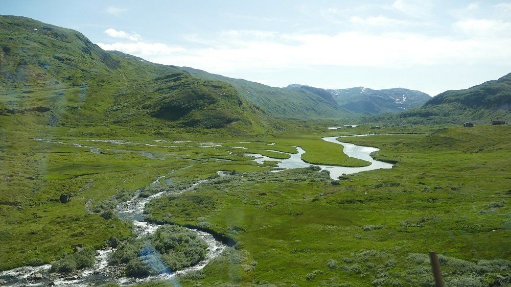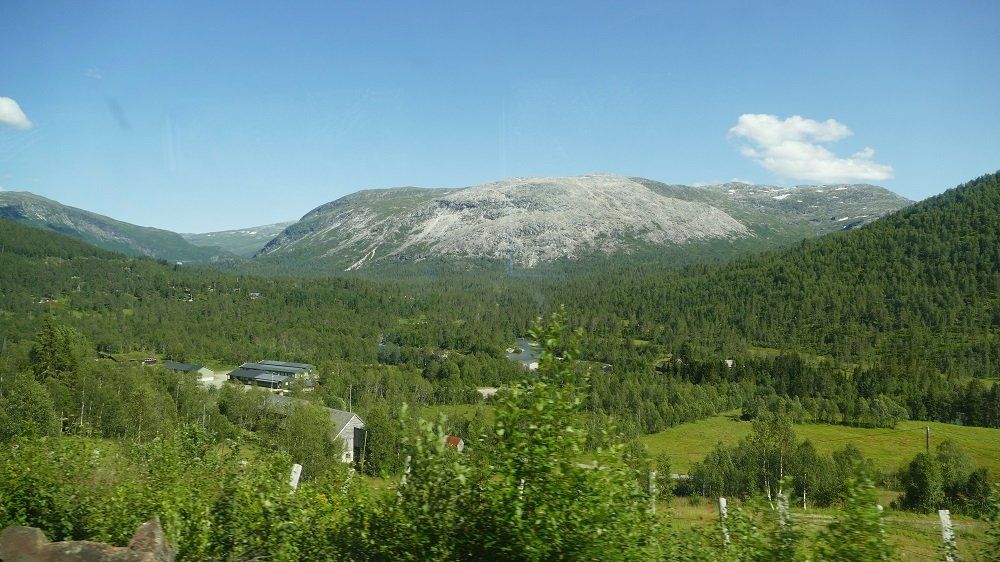 Gerd und ich steigen um in die Flam-Bahn. Auch wenn es sich während der Bootsfahrt schon angefühlt hat, als ob wir in den Bergen wären, sind wir es bald nun wirklich, in einer knappen Stunde fast 900 Meter über NN.