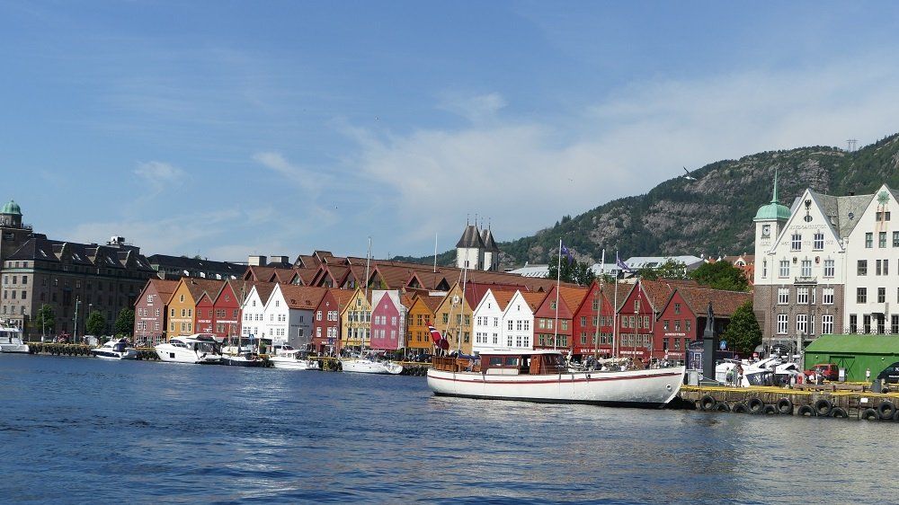 Mittags kommen wir im Hafen von Hjellestad an. Als wir mit dem Bus Bergen erreichen, sehen wir, dass es die richtige Entscheidung war. Im Stadthafen ist der Teufel los. Trubel ist noch untertrieben, Massen wälzen sich am Stadtkai entlang, ein Betrieb wie beim Hamburger Hafenfest. Das Tall Ship Race ist in Bergen angekommen, die Kaimauern sind belegt mit den großen Rahseglern. Pünktlich mit uns ist auch ein Hoch eingetroffen und wird uns die nächsten Tage mit Temperaturen um die 25 Grad, Sonne und Sicht beglücken.