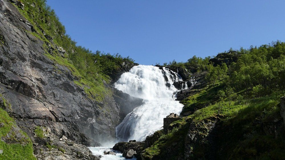 Wir haben es geschafft! Wir sind in Bergen, dem Umkehrpunkt unseres Segeltörns. Naja fast, denn wir lassen uns mit einem Schnellboot noch ein Stück weiterfahren, bis hinein in den Sognefjord nach Flam, dann mit der gleichnamigen Bahn noch 866 Meter über NN nach Myrdal und mit der Bergen-Bahn zurück. Was für ein grandioses Erlebnis!