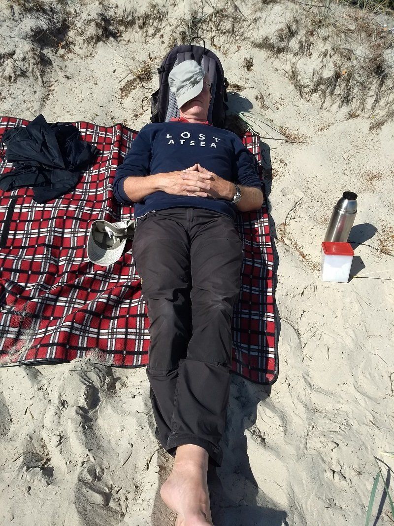 Und nur ein kurzes Stück mit dem Fahrrad entfernt gibt es unglaublich schöne Badestrände. Da der Wind ablandig ist und die Sandstrände durch einen Wald geschützt sind, herrschen hier noch richtig sommerliche Temperaturen vor – und ausser uns ist niemand mehr da.
