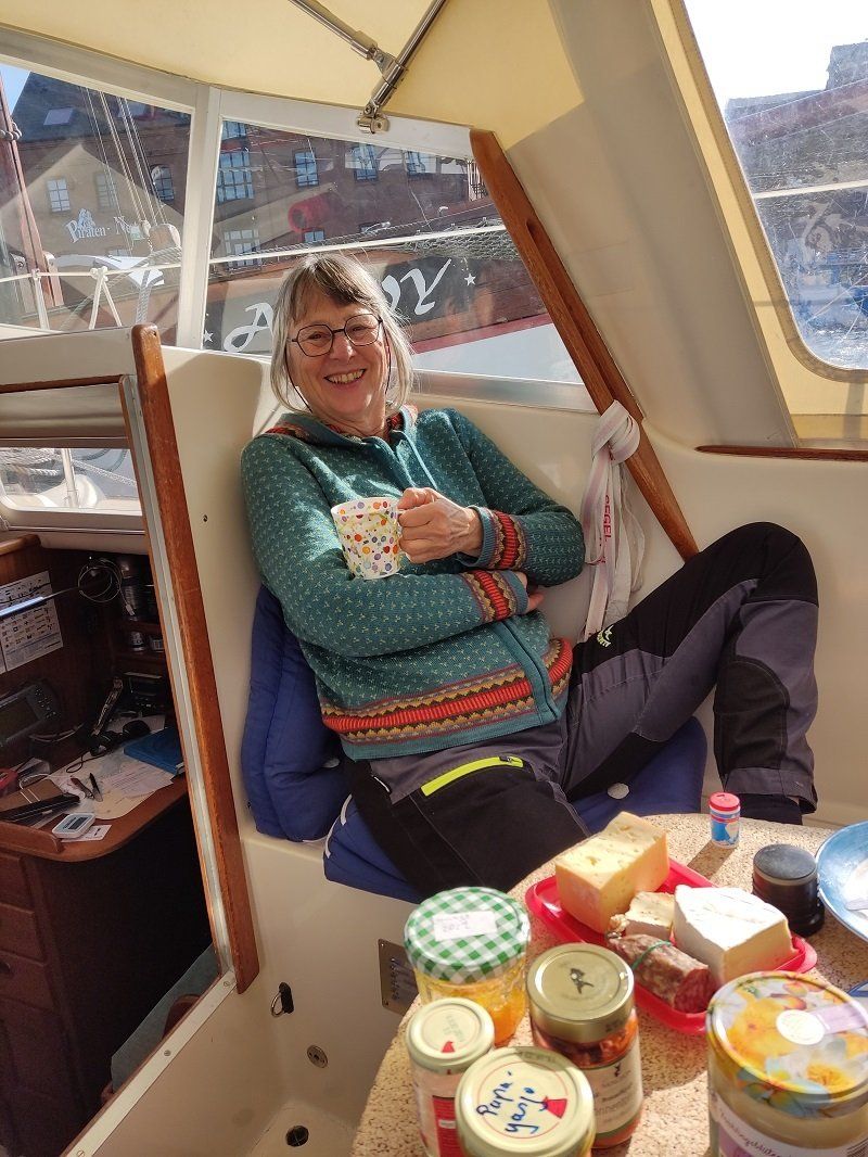 Und wir? Wir wären jetzt bereit in See zu stechen. Doch starke, böige Winde – und die auch noch aus der falschen Richtung – lassen uns weiterhin abwarten und (nicht immer nur) Tee trinken.