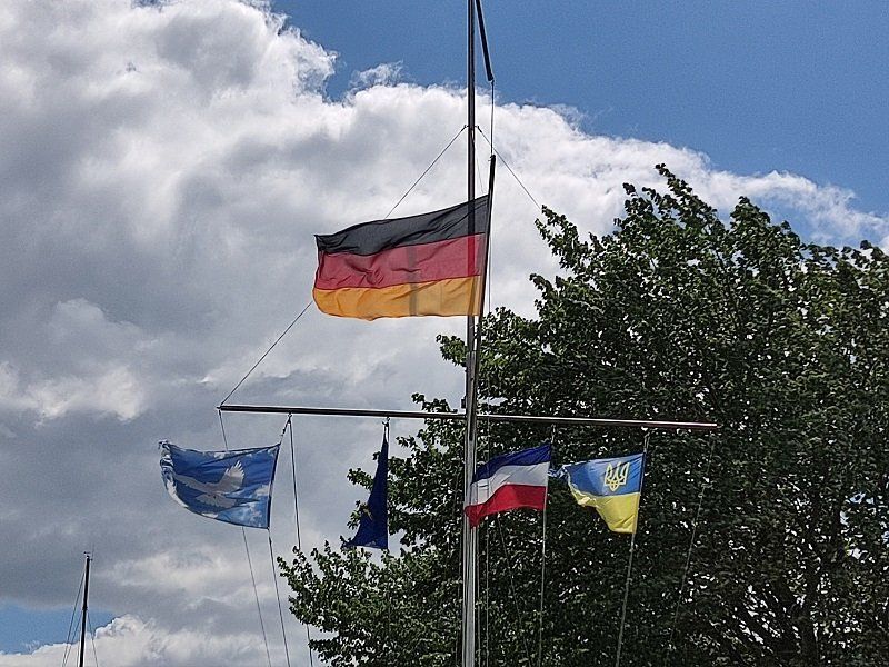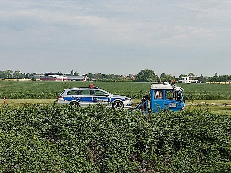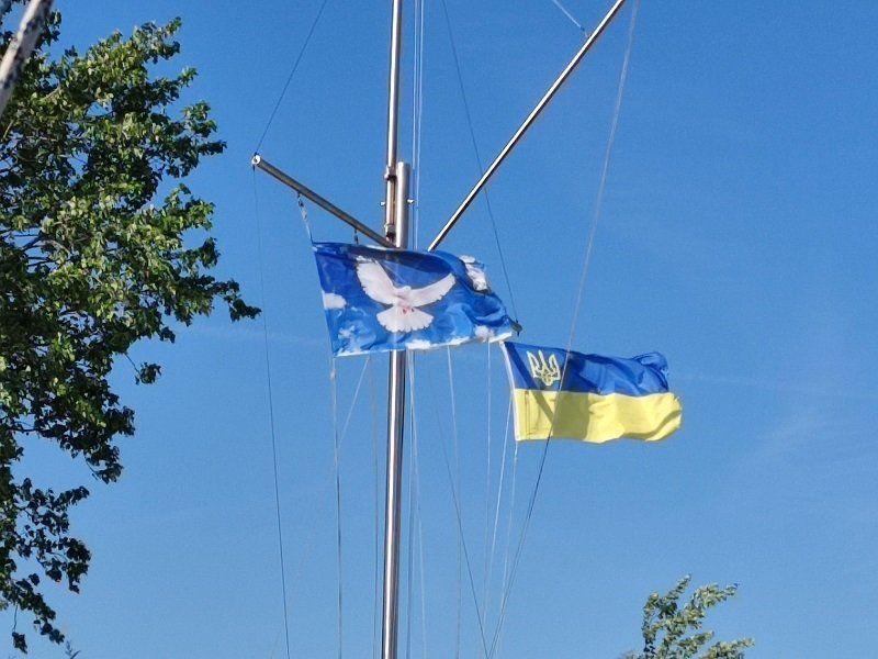 Wir radeln weiter und kommen an dem Truppenübungsplatz Puttlos vorbei. Hundert Milliarden sollen nun zusätzlich in den Bundeswehrhaushalt fließen. Wenn man sich den Schuppen auf dem Militärgelände anguckt, scheint das auch bitter nötig zu sein. (Ironie Ende). Erfreuen wir uns da doch lieber an der Solidaritätsbekundung für die Ukraine in unserem Heimathafen Orth.