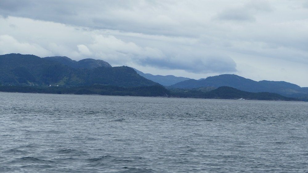 Schon früh um kurz nach 7 Uhr machen wir uns ausgeruht auf den Weg. Ganz feiner Nieselregen hüllt die Landschaft, an der wir vorbeisegeln, in einen nebelartigen Dunst. Der Wind kommt auch noch passenderweise von hinten, so dass wir unsere Cockpitscheiben ständig von innen ‚flitschen‘ müssen. Wir können aber erahnen, dass das Fjordsystem hier (Ryfylke), nördlich von Stavanger fantastisch sein muss und wollen uns auf dem Rückweg dafür mehr Zeit lassen.