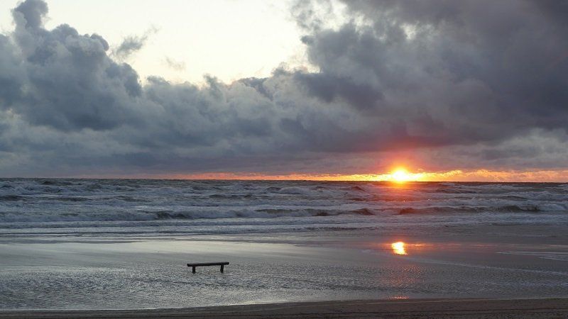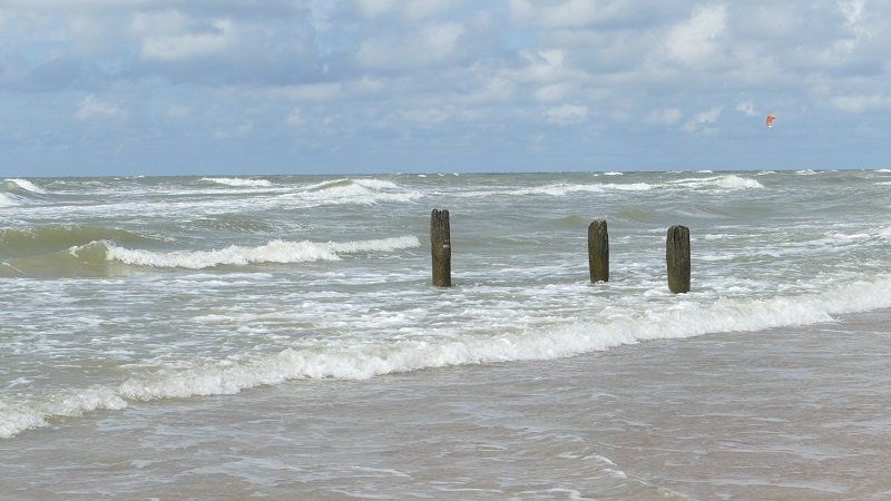 Und am nächsten Tag legte der Wind los. Morgens konnten wir noch kurz zum Strand und auf die Mole gehen, um die Kraft des Windes und des Meeres zu bewundern. Dann trieben uns Regen und immer stärkere Böen schnell zurück zum Boot.