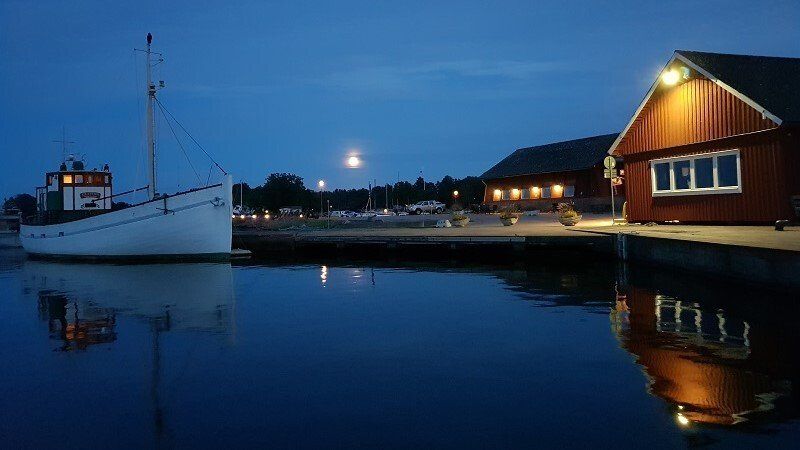Ebenso bezaubernd ist Paskallavik. Ein alter Steinverladehafen mit einem urigen Café in einer alten Werkshalle hat noch geöffnet. Abends auf einer kleinen, vorgelagerten Schäre erwacht eine lebensgroße Charlie Chaplin Figur des Künstlers Källström mit Flashlight zum Leben: ‚Als die Bilder laufen lernten!‘