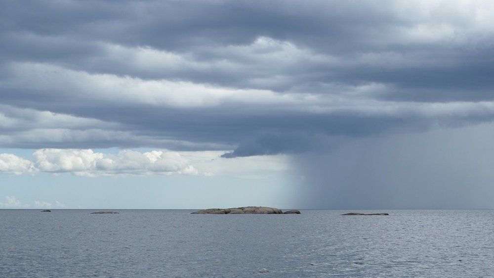 Die Wind- und Wettervorhersage war zwar nicht so optimal, aber die von uns angelaufene Schäre sollte (laut Hafenführer) besonders geschützt sein. Es war kalt, ab und zu fiel Regen und Böen fegten um die Schäre.
