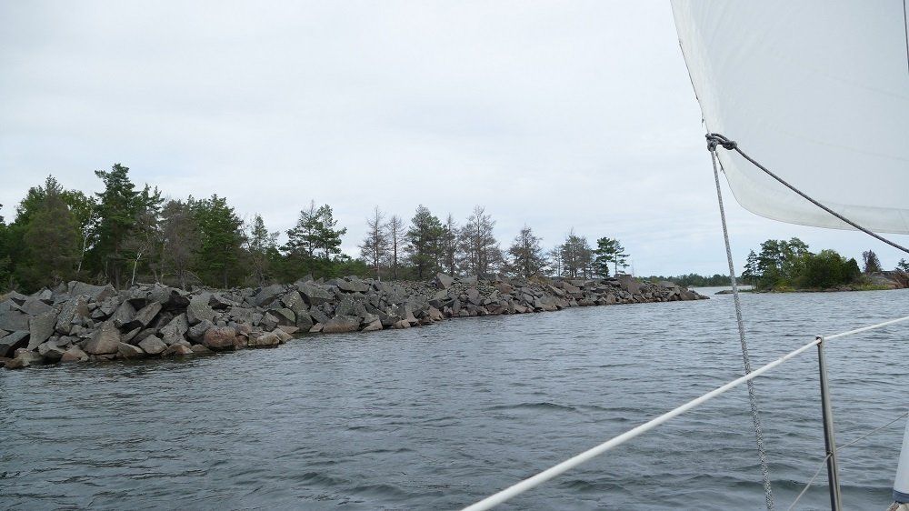 Wir ließen uns von der Genua durch das innere Schärenfahrwasser ziehen, vorbei an leicht bewaldeten oder ganz blanken, runden Granitbuckeln. An vielen Stellen sind die Spuren von früheren Granitabbauarbeiten zu sehen. Wir waren verzaubert und wollten unbedingt die Nacht an einer Schäre verbringen.